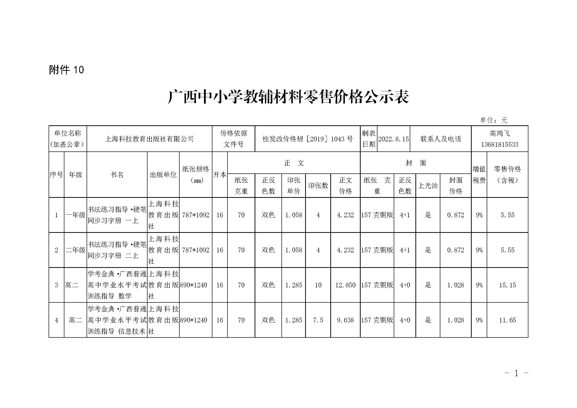 22秋广西省教辅公示(上海科技教育)